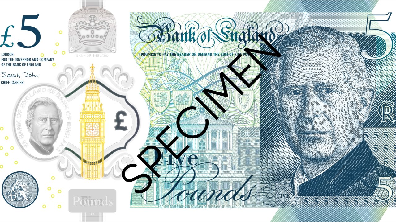 Новите банкноти от полимерен материал от 5, 10, 20 и 50 паунда имат портрет на Чарлз отпред, както и негова камея (вид овално изображение или изделие, често използвано и в бижутерството) в прозрачния защитен прозорец на банкнотите, като в останалата си част остават сходно с настоящия дизайн, пише БТА.