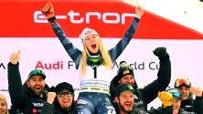 Американската звезда на женските алпийски ски бе най-бърза и в двата манша и с общо време 2:00.61 минути записа своята победа номер 83, с което излезе еднолично начело при жените.