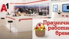 По време на предстоящите дни около Великден магазините на А1 ще обслужват клиенти с празнично работно време. Всички търговски обекти на компанията ще останат затворени единствено на 20 април (неделя) – Великден.