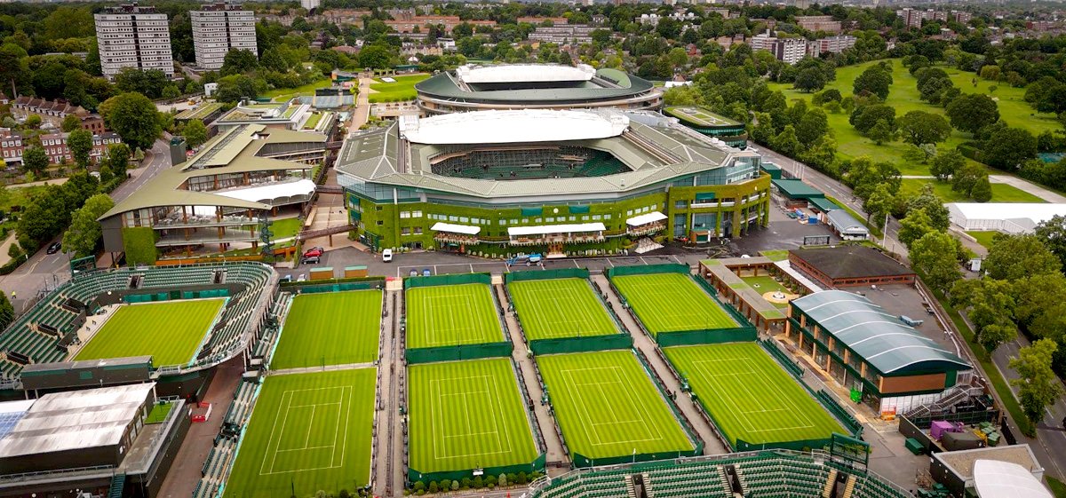 Уимбълдън е единственият турнир от Големия шлем, игран на тревни кортове, наричани "свещената трева". Тревата се поддържа с изключителна грижа, но за финалите често е износена, което добавя предизвикателство. Тази настилка изисква специфичен стил на игра, благоприятстващ бързи подавания и агресивен подход.