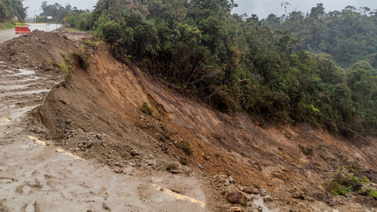 По разчистването на калната маса работят две машини, а пътят и в двете посоки е затворен.