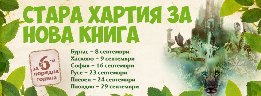Шест български града ще бъдат домакини на шестото издание на националната екоинициатива „Стара хартия за нова книга“. През 2018 г. Общините Бургас, Хасково, София, Русе, Плевен и Пловдив ще посрещнат кампанията, която дава възможност на децата да научат повече за рециклирането, да разберат как да пазят природата и да събират разделно отпадъците. Всяко дете, което доведе възрастен придружител с поне 5 кг стара хартия за рециклиране, ще получи нова детска книга по избор, както и подаръци от партньорите на празника.