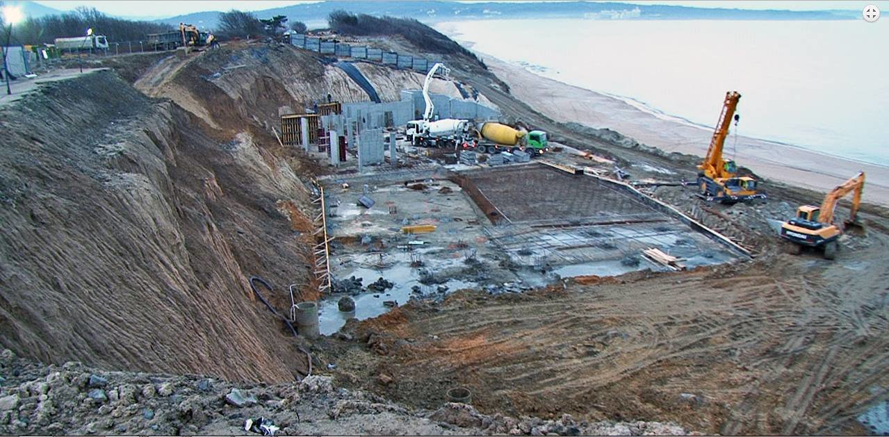 В края на Шофьорския плаж, в защитената местност Алепу, на метри от пясъчната ивица е изградено геозащитно съоръжение, което прилича на двуетажна сграда. При проверка преди месец от Регионалната дирекция за национален строителен контрол в Бургас казаха, че това са стоманобетонни кубове, с които се укрепва свлачище.
