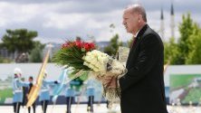 След полагането на цветя на специален паметник за жертвите на преврата в Анкара в неговия президентски дворцов комплекс, Ердоган взе участие в церемония в парламента, който също беше бомбардиран по време на опита за преврат.