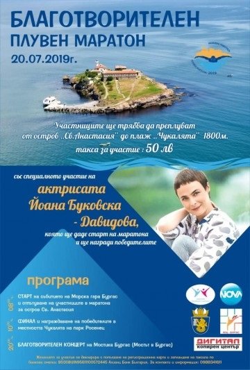 Участниците ще плуват разстоянието от о-в „Света Анастасия“ до парк Росенец, местността Чукалята – 1800 м. Такса за участие 50 лв. Записвания на телефон: 0988 341 611.