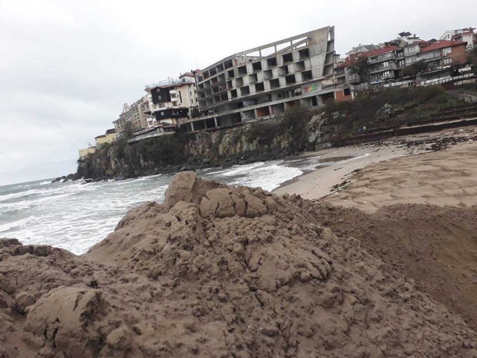 Почти премахната е вече пясъчната дига на Централния плаж в старата част на Созопол. Само часове след като министър Николина Ангелкова разпореди съоръжението да бъде съборено, концесионерът започна действия.