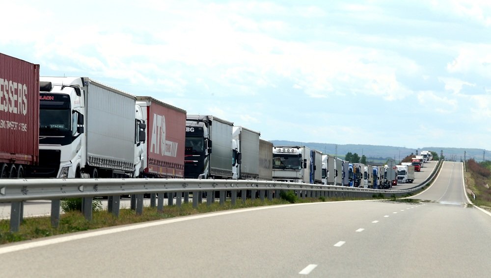 Стотици тирове изчакват подредени на пътя Видин-Калафат, за да пресекат границата със северната ни съседка и да продължат курсовете си към различни точки на Европа.