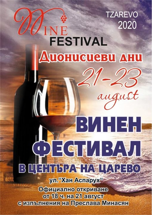 Царево отново става център на винения туризъм през август. Четвъртото издание на Винен фестивал „Дионисиеви дни“ в морския град започва на 21 август и ще продължи три дни. Изложението и през това лято ще бъде в познатите синьо-бели шатри в Арт зоната на централната улица „Хан Аспарух“.