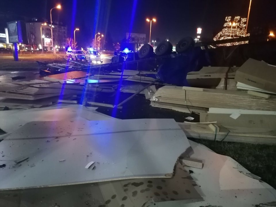 На кръгово кръстовище обаче шофьорът губи управлението на камиона и се обръща, вероятно заради мократа настилка и високата скорост. По това време на иначе натовареното кръстовище не е имало коли и пешеходци и пострадали няма, съобщи bTV.