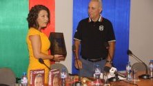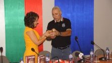 Специален подарък получи и госпожа Ставрева - червена тениска с номер ''8'' и малка реплика на златната топка.