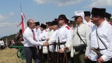 След словото на президента в програмата беше заложена възстановка на шипченските боеве, която предизвика най-голям интерес. Моменти от сражението на мястото, където е била главната позиция на отбраната, пресъздадоха 250 родолюбци от националното дружество "Традиция".